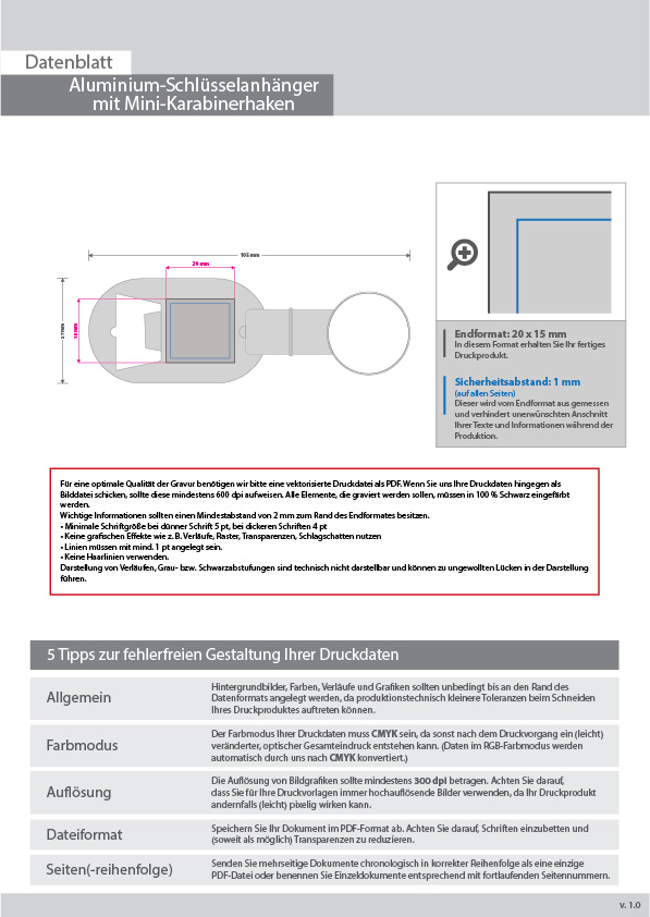 Aluminium-Schlüsselanhänger mit Mini-Karabinerhaken und einseitiger Lasergravur