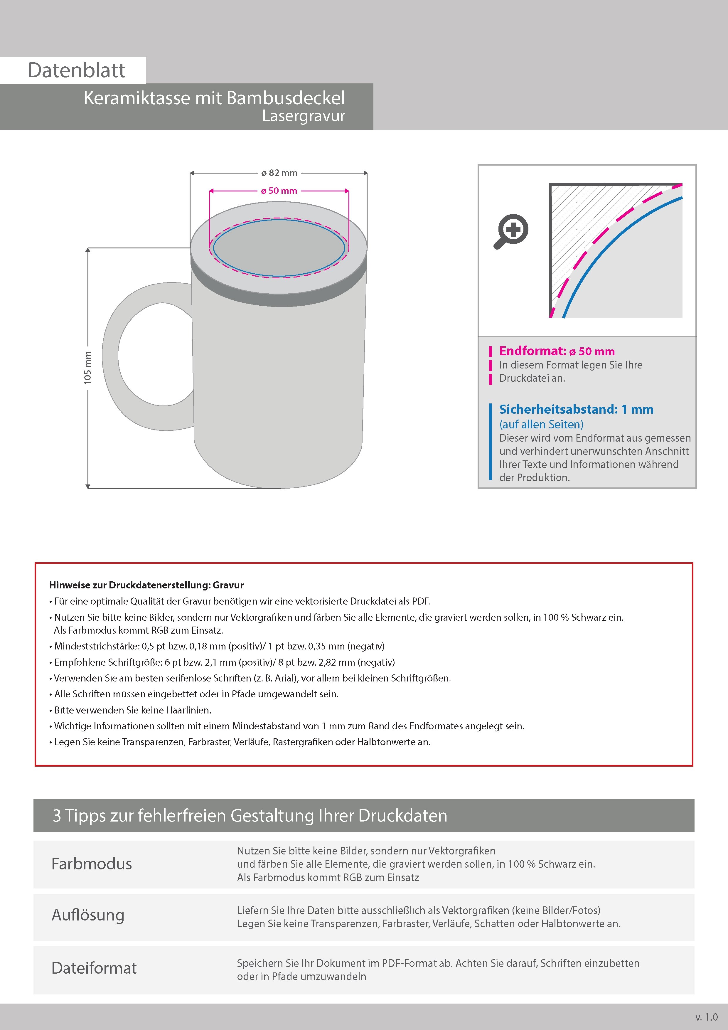 Keramiktasse mit Bambusdeckel 370 ml mit einseitiger Lasergravur