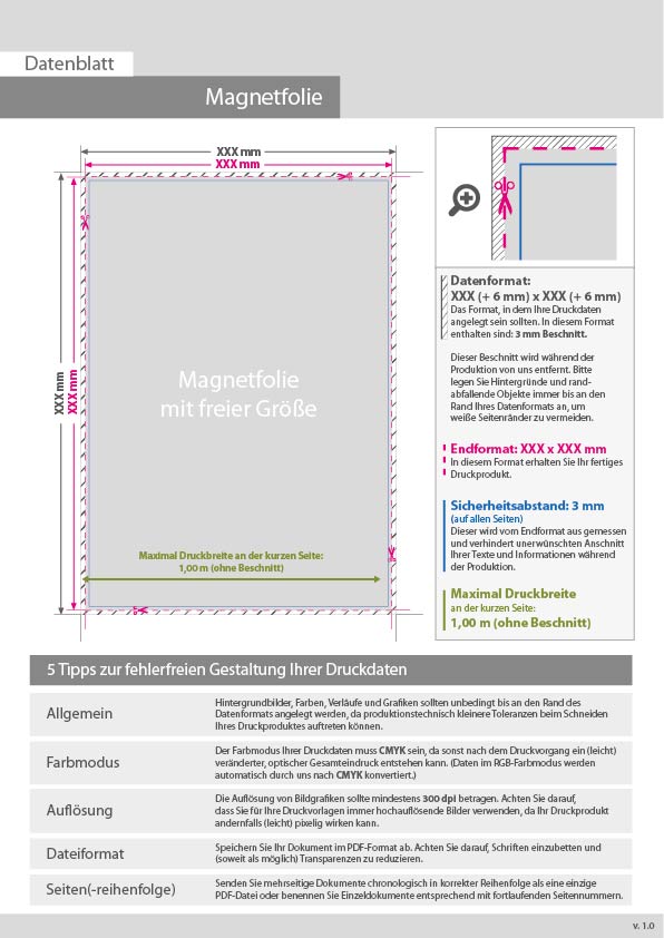 Selbstklebende Magnetfolie in freier Größe (rechteckig), 4/0-farbig bedruckt