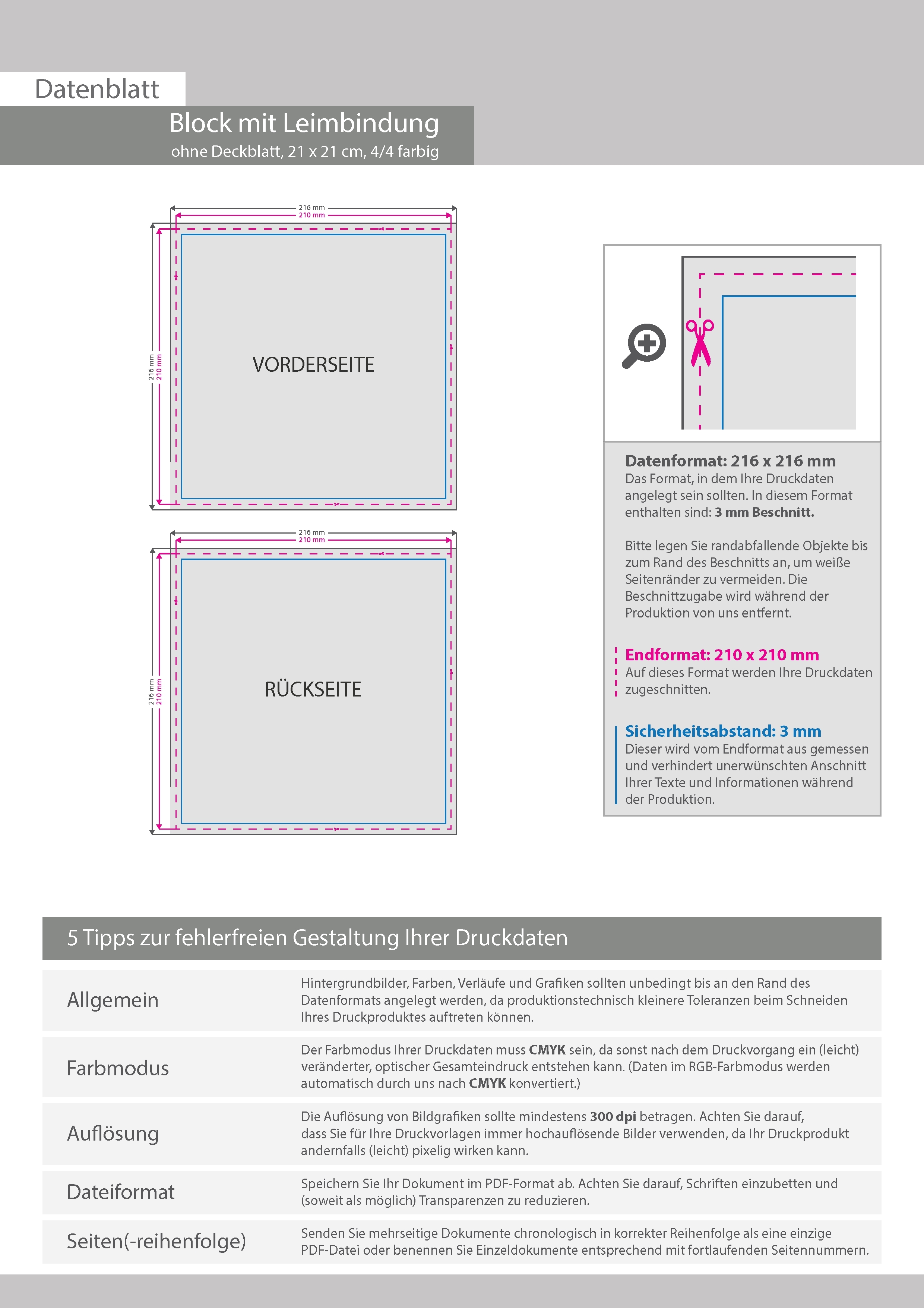 Block mit Leimbindung, 21,0 cm x 21,0 cm, 25 Blatt, 4/4 farbig beidseitig bedruckt