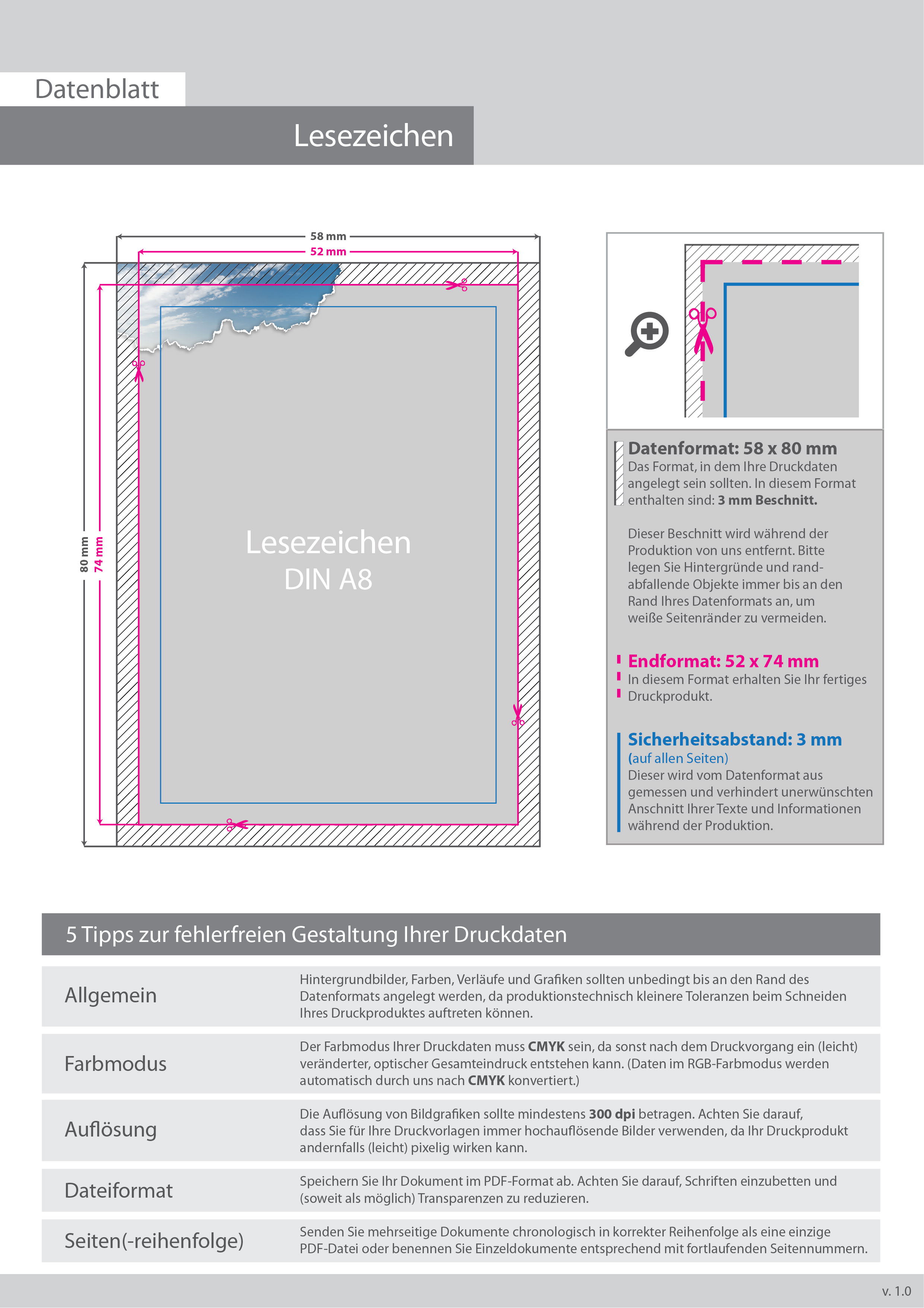 Lesezeichen DIN A8 (5,2 cm x 7,4 cm), einseitig bedruckt