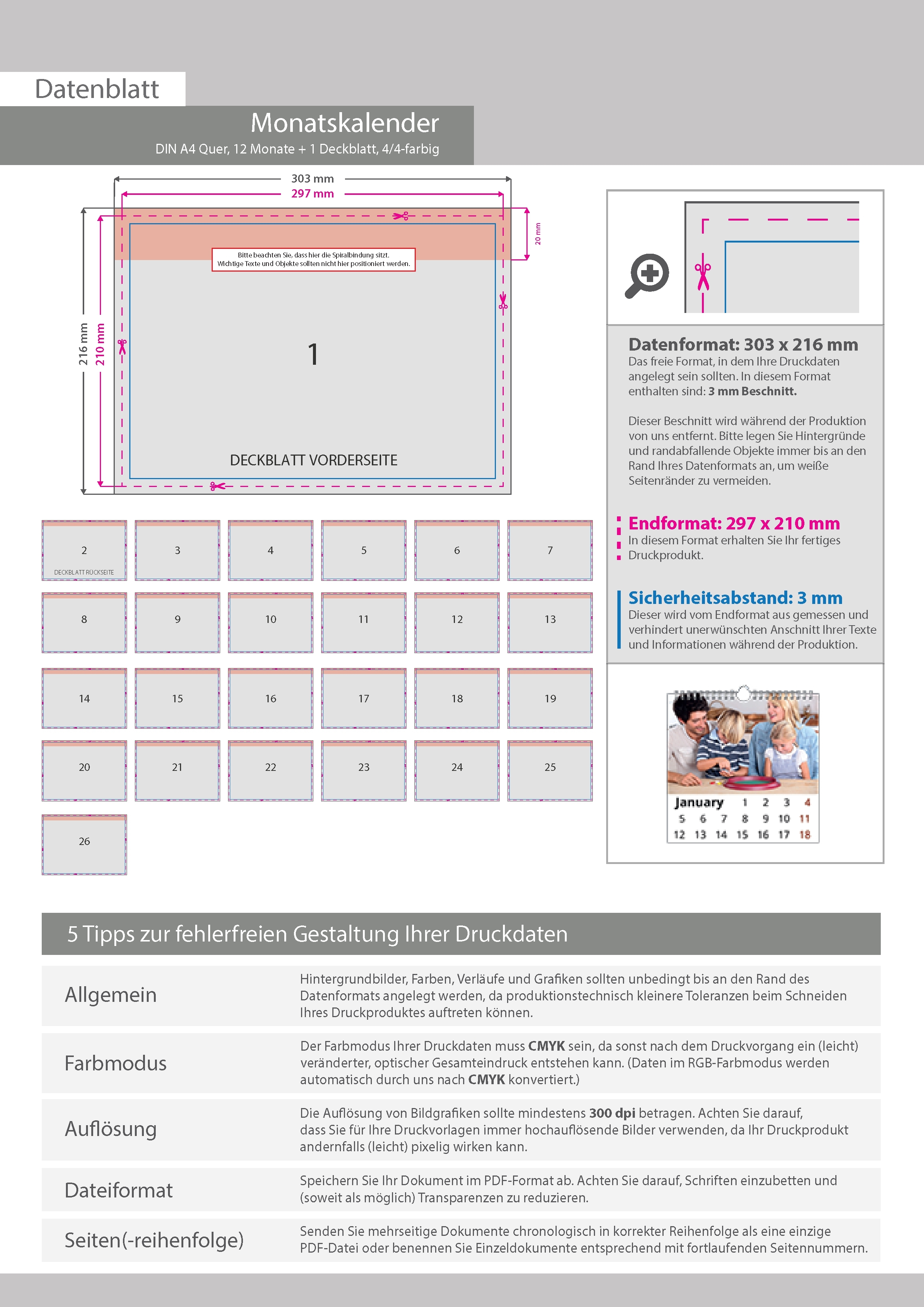 Monatskalender 13 Blatt (12 Monate + Deckblatt)