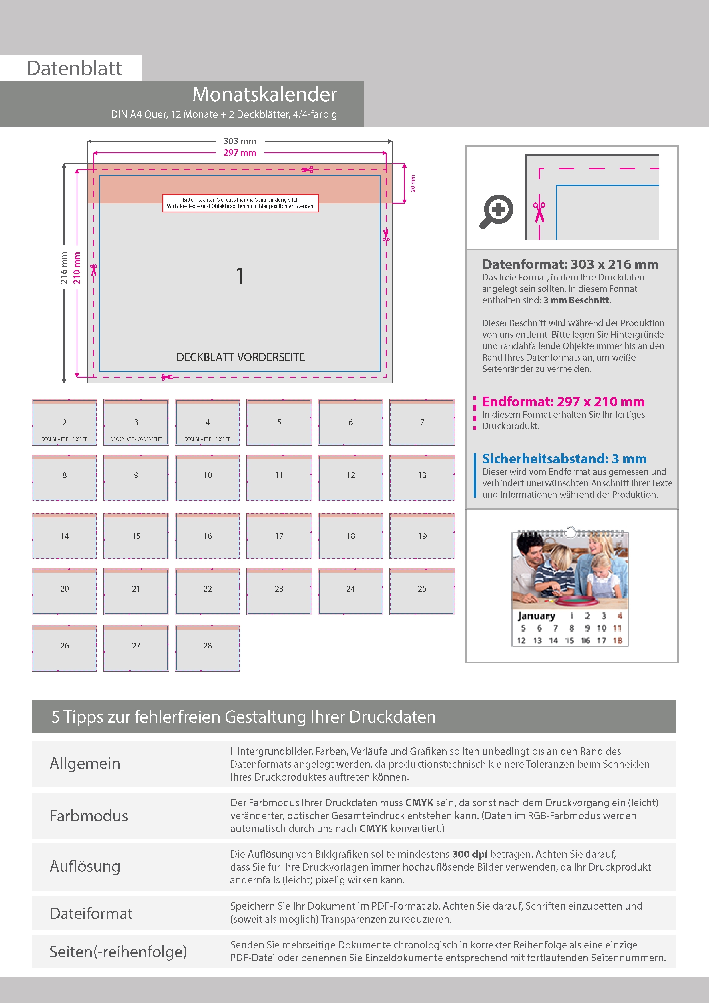 Monatskalender 14 Blatt (12 Monate + 2 Deckblätter)