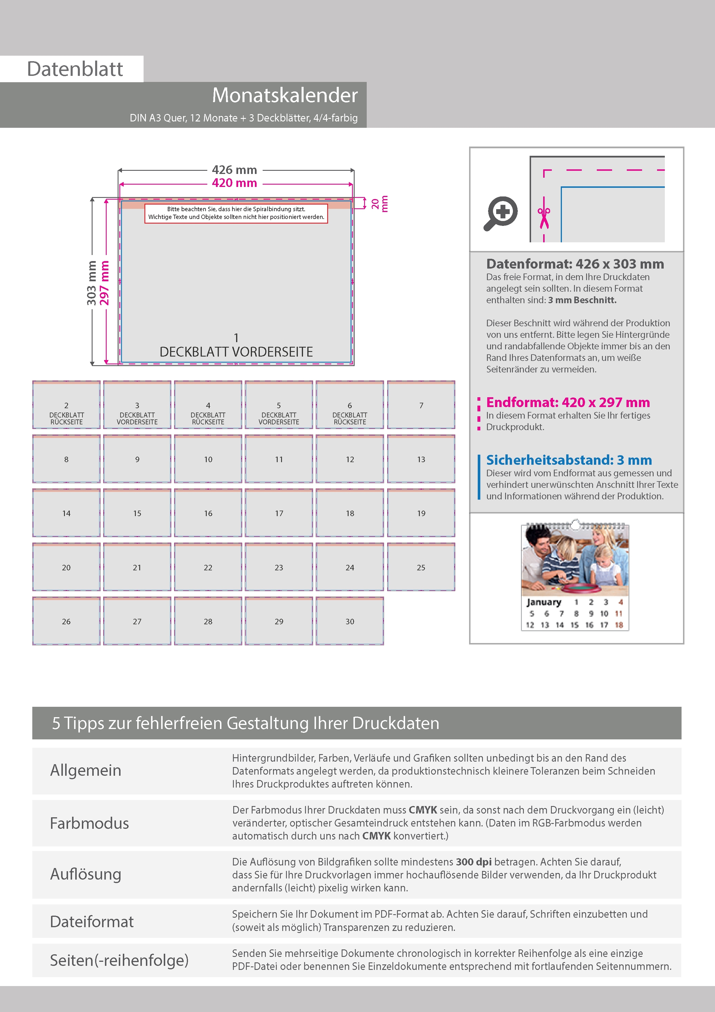 beidseitig bedruckt 4/4 farbig, DIN A3 quer (420 x 297 mm)
