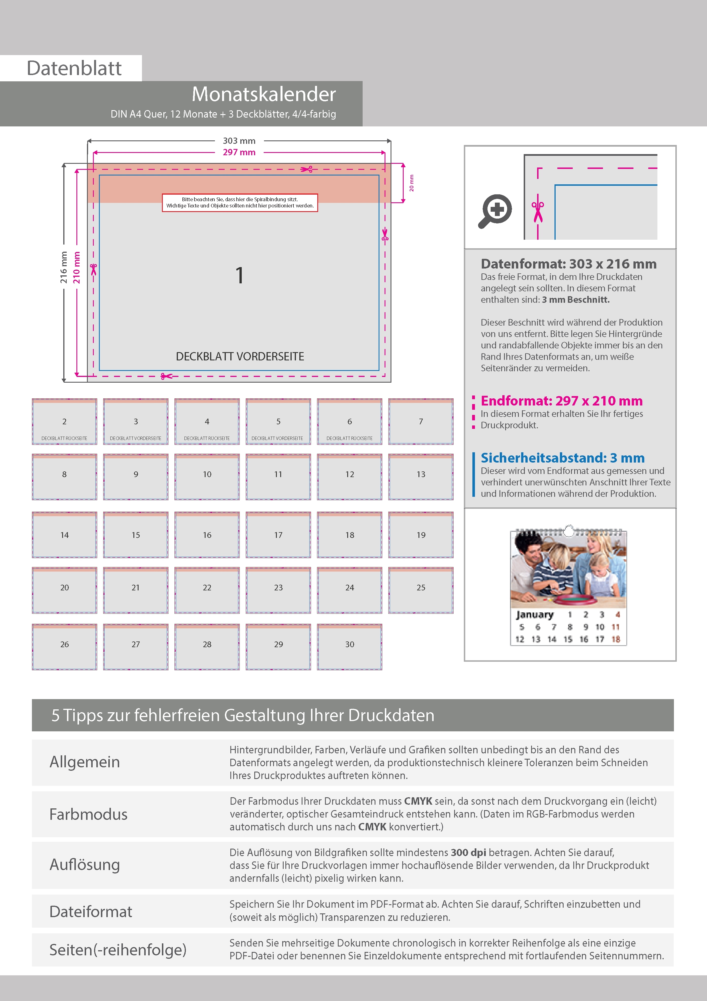 Monatskalender 15 Blatt (12 Monate + 3 Deckblätter)