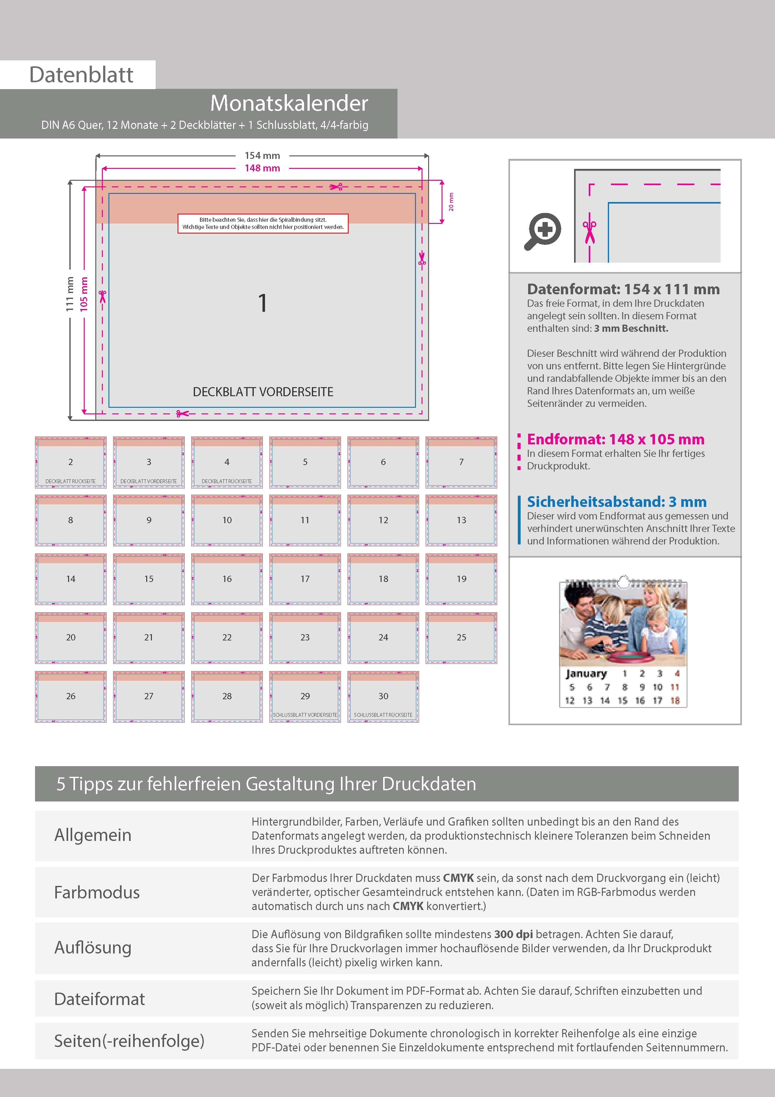 Monatskalender 15 Blatt (12 Monate + 2 Deckblätter + 1 Schlussblatt)