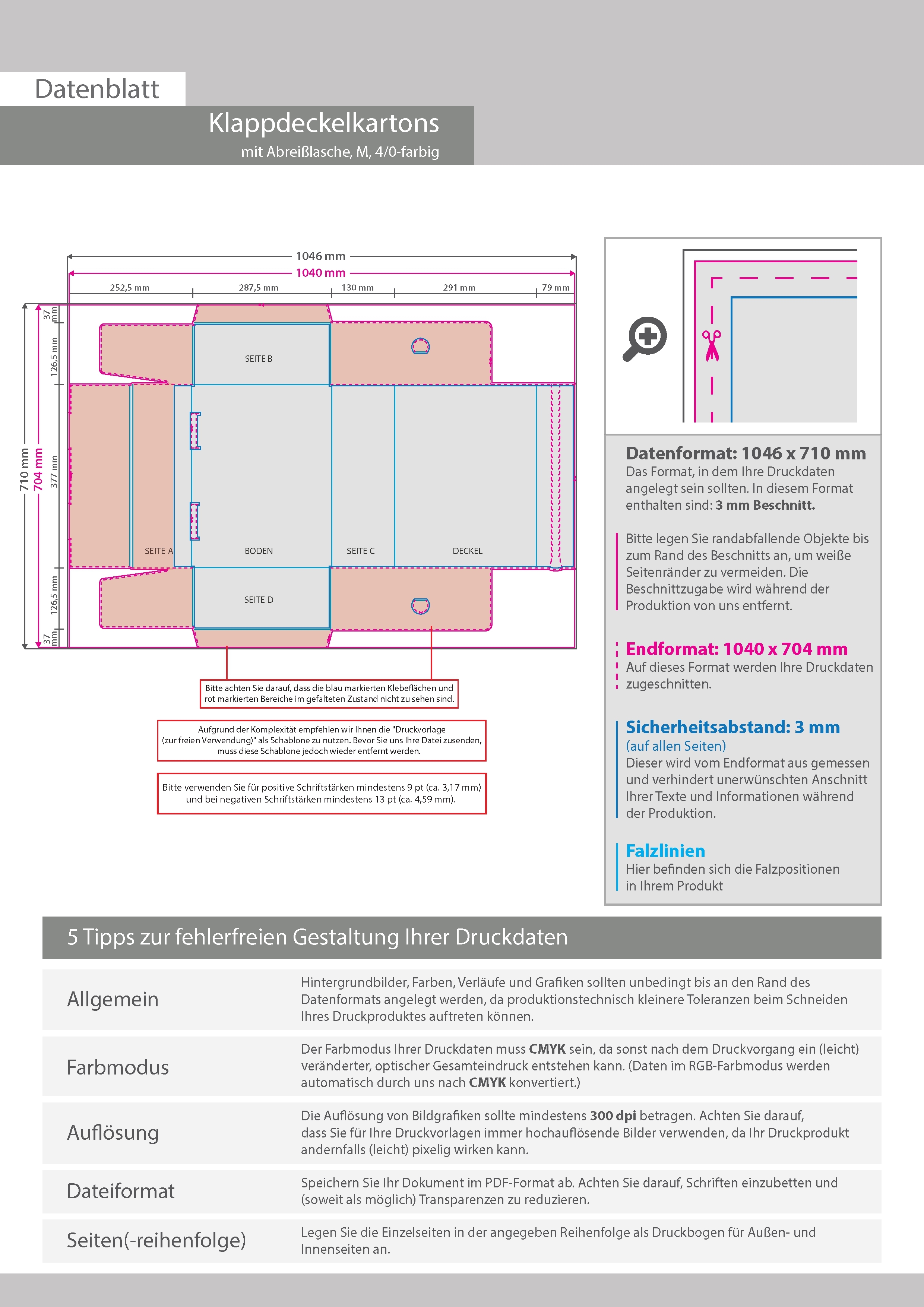 Klappdeckelkarton mit Abreißlasche M, 4/0 farbig bedruckt